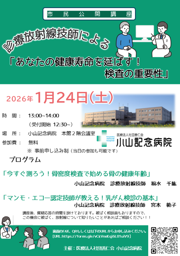 医療法人社団善仁会 小山記念病院 2階会議室にて、標記の催しを行います。